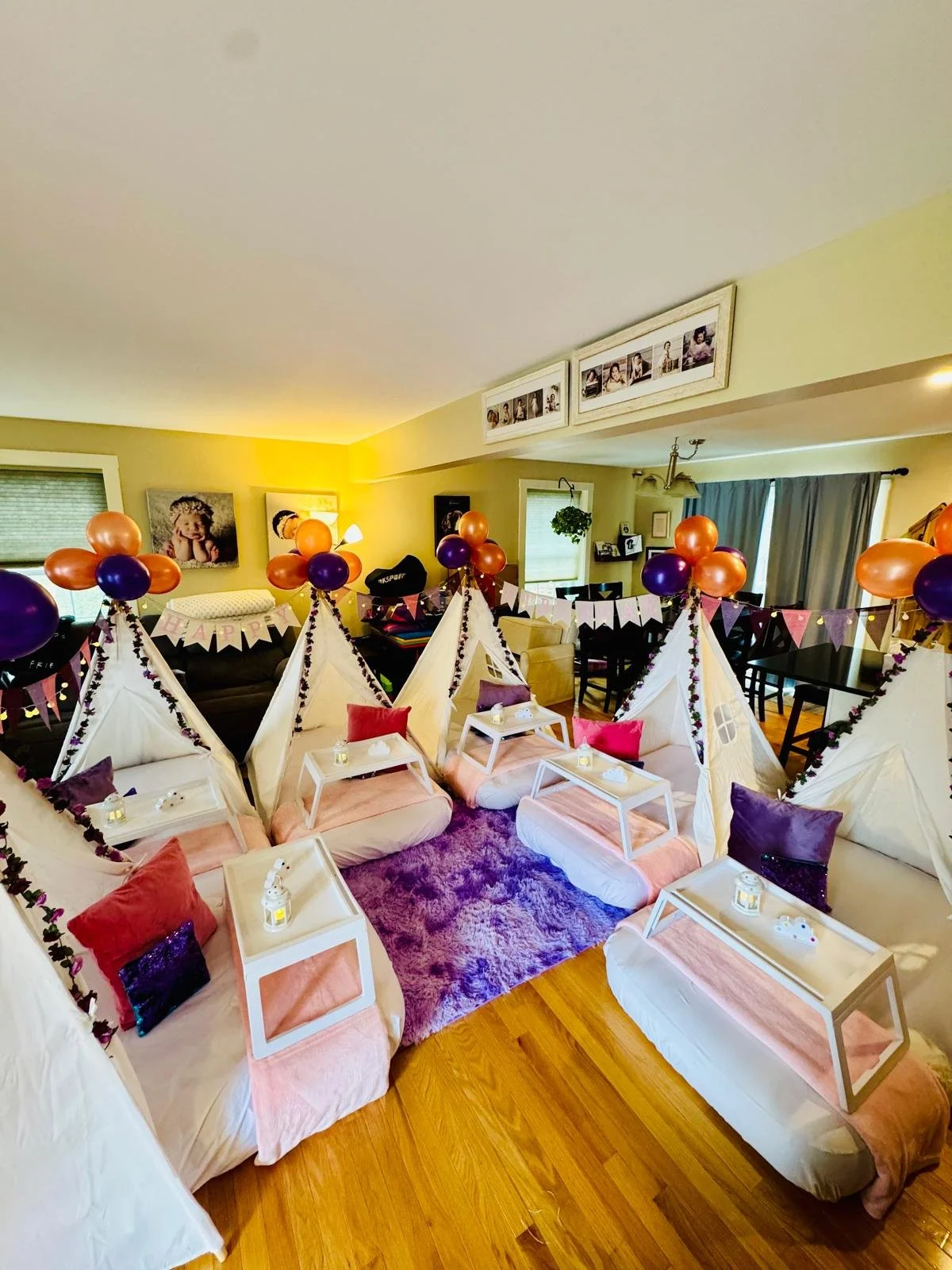 Includes full planning, setup, decor, breakdown, and cleanup.Our full-service teepee sleepover experience includes:
